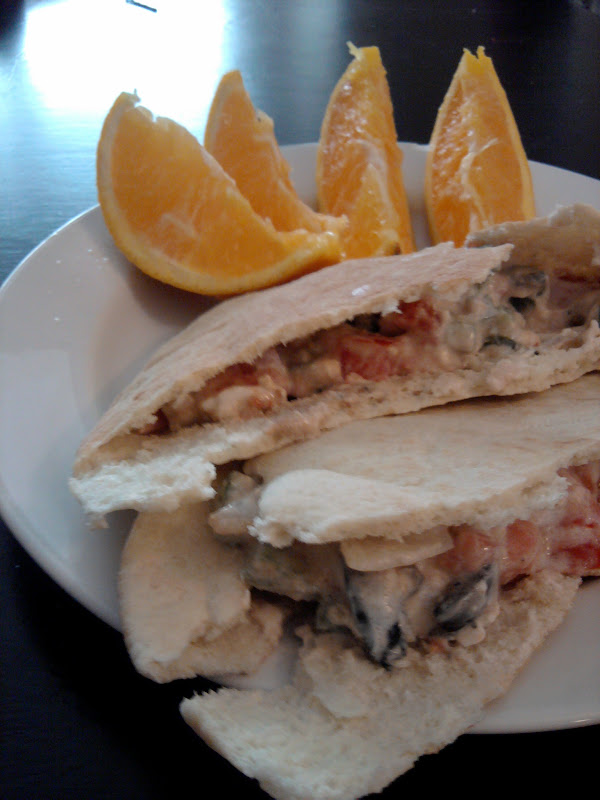 3. Stuff it. Break your pita bread in half and stuff it with filling! (Just like the Cornucopia in the Games... wait... I have taken it too far.)